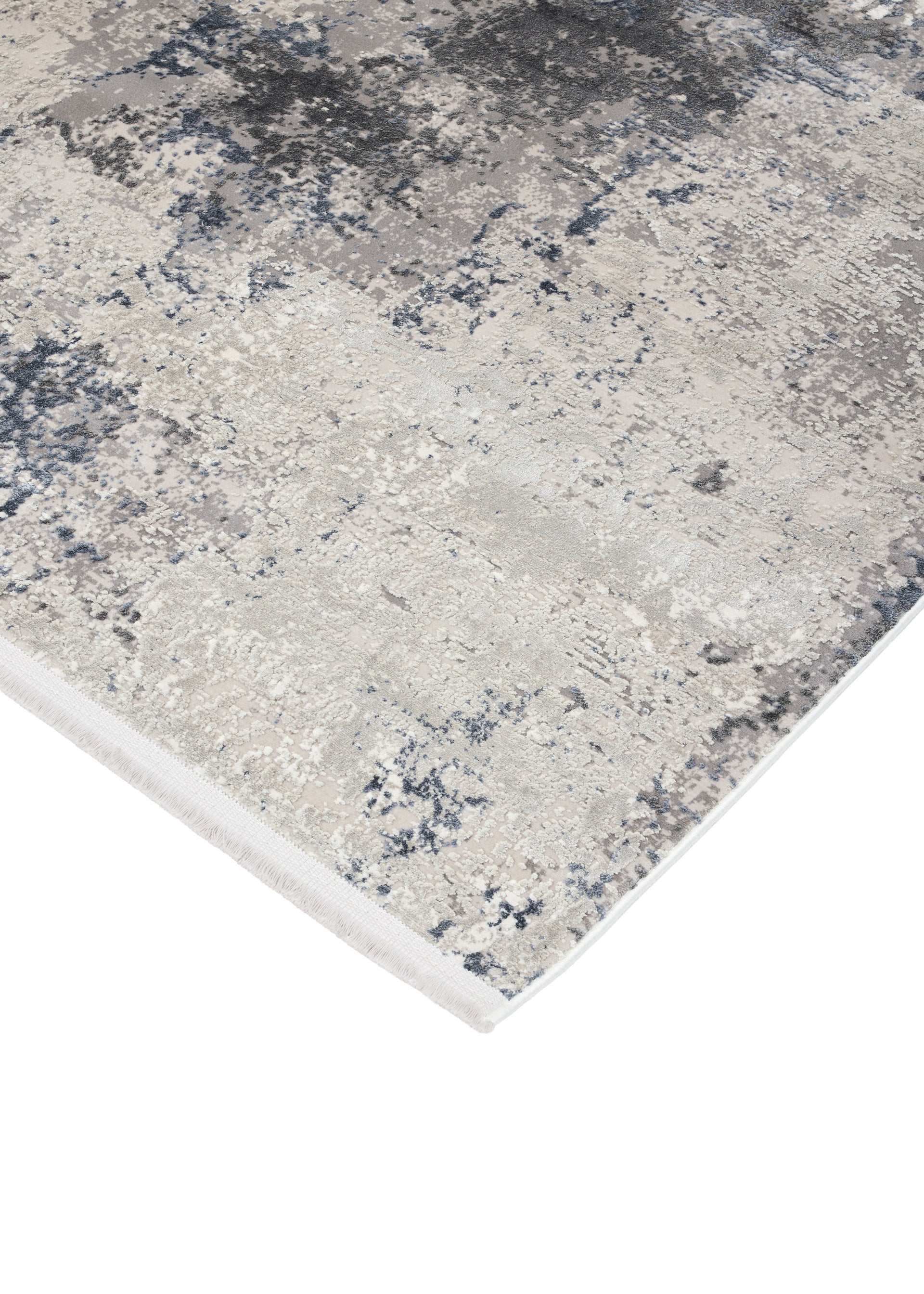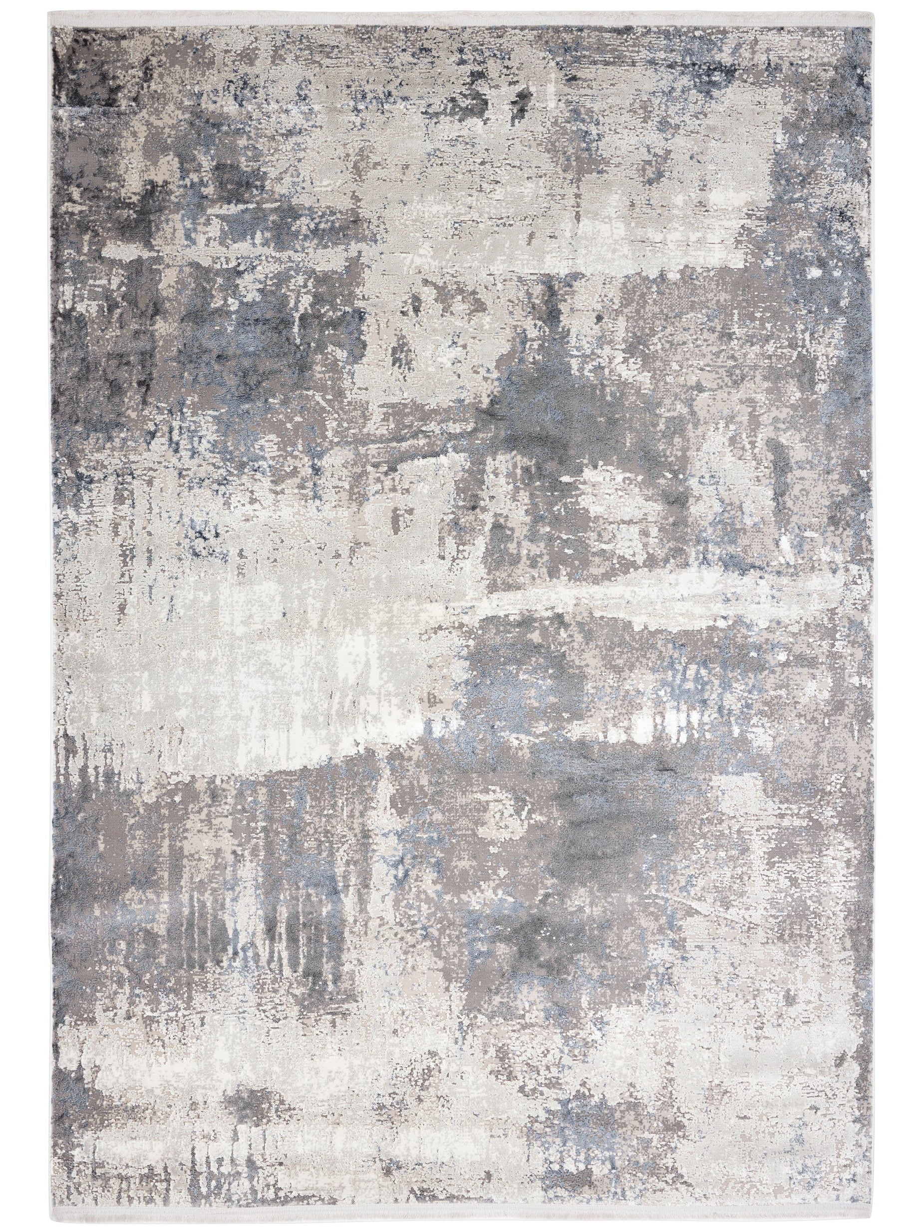 Textured "Fracture" area rug showcasing an abstract pattern with gray, beige, and blue hues, ideal for modern home decor.