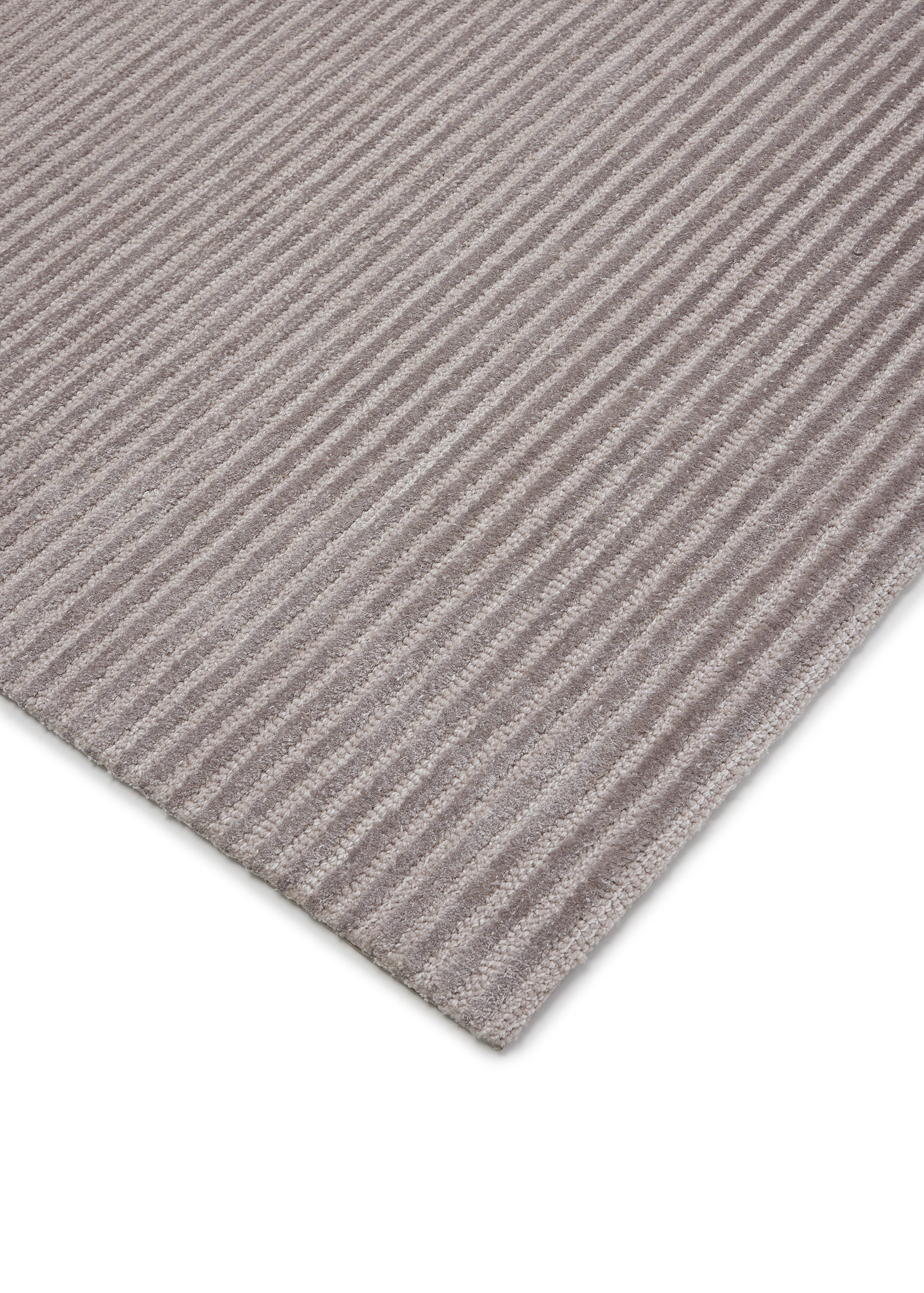 Close-up of the Beam area rug in Angora Gray & Pebble Gray, showcasing the rug's textured, striated design