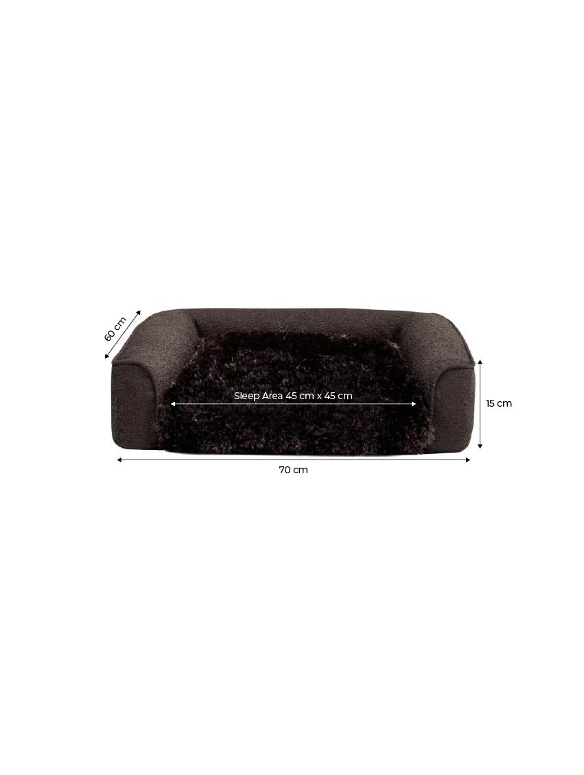 At its heart lies a sleeping surface crafted in our signature Touch Me quality, renowned for its velvety softness and inviting texture. Surrounded by gently structured, upholstered sides, the design provides both support and a cocoon-like sense of security, ensuring a restful retreat for your dog.
