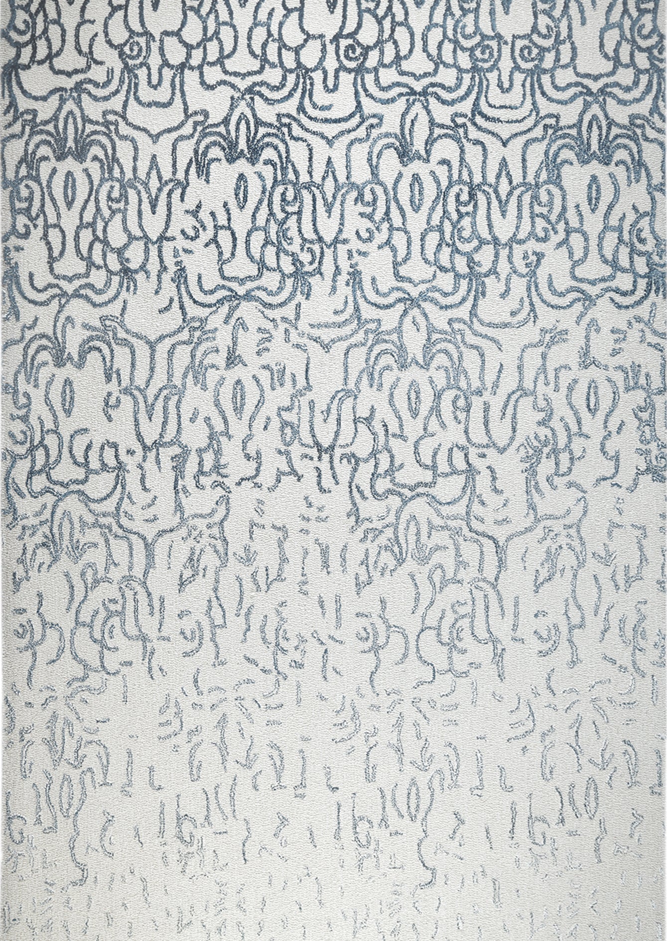 Fade captures the beauty of transition, with an intricate motif that gradually dissolves as it moves across the rug’s surface. The pattern begins with rich, detailed forms at the top and gently fades into a softer, more open expression, creating a sense of flow and impermanence. This gradient effect brings depth and movement, evoking the passage of time.