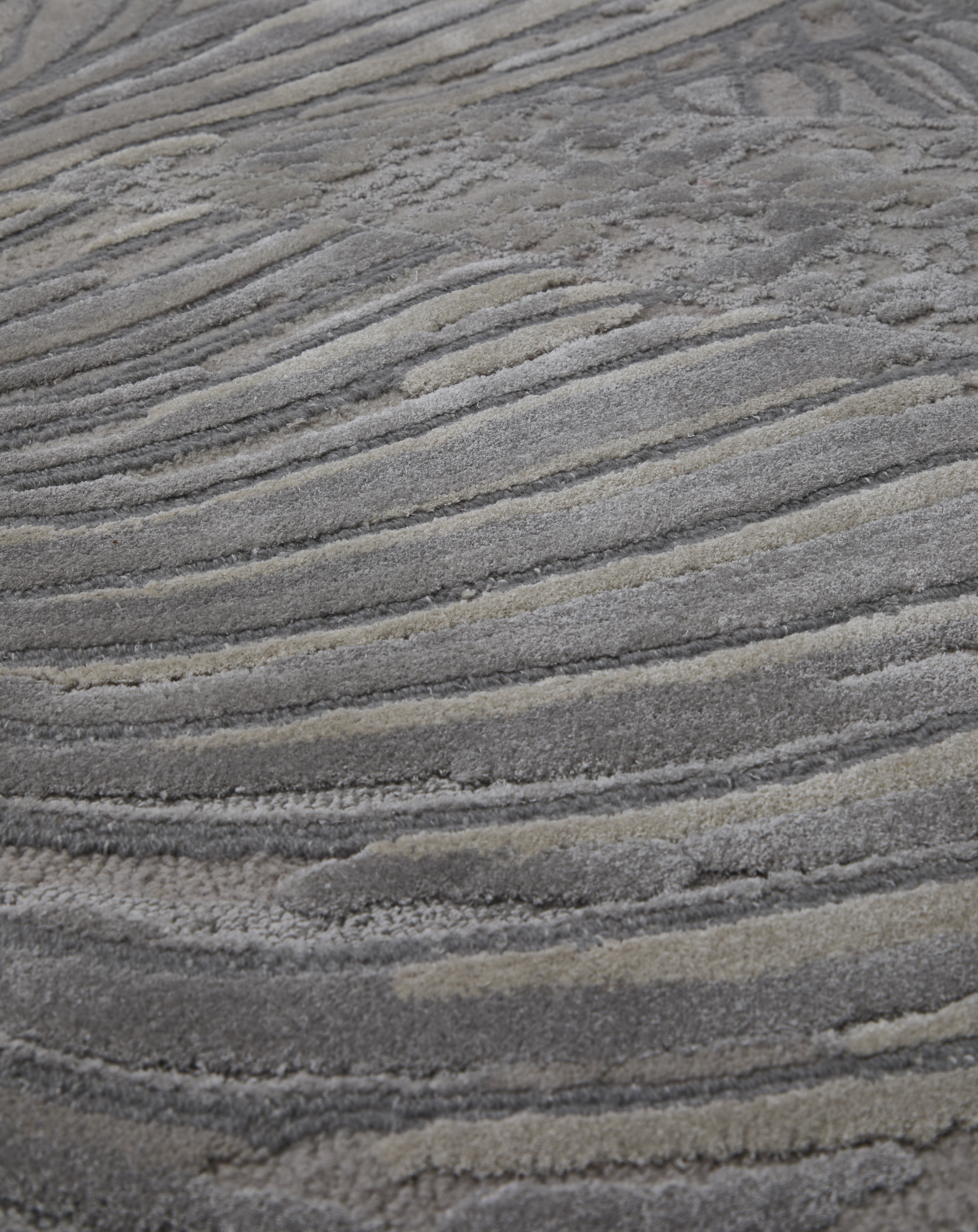 Foliage magnifies the intricate structures of leaves into flowing, linear forms. The design captures the geometry and rhythm of nature, translating it into a contemporary, abstract expression.
